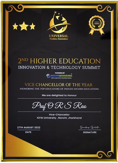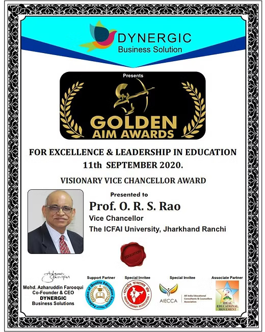 Prof ORS Rao Awarded excellence in Higher Education Leadership