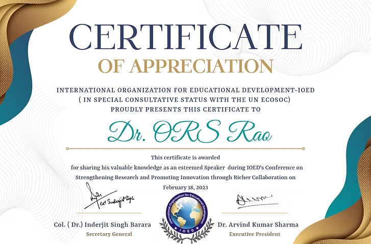 Certificate of Appreciation by IOED – Feb 18, 2023