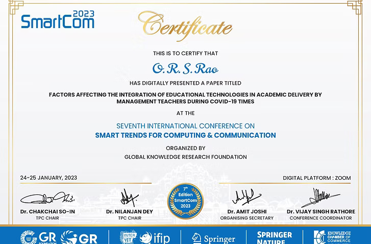 Prof ORS Rao Awarded excellence in Higher Education Leadership